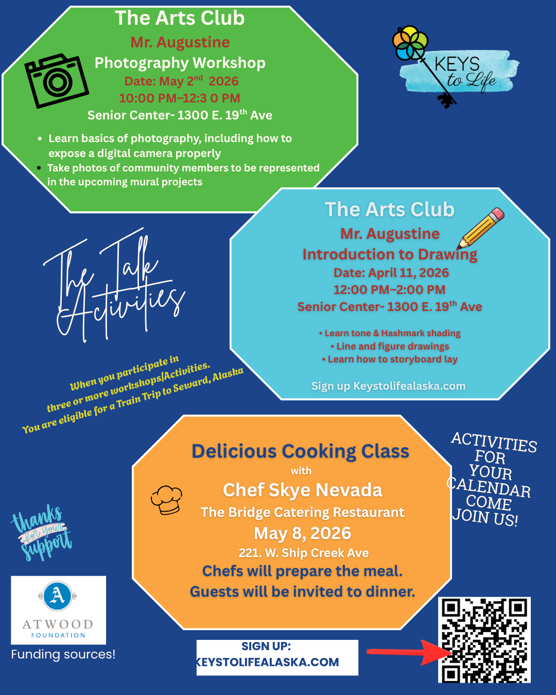 All expenses covered by Keys to Life, Funded by: Alaska Children’s Trust, St. Mary’s Bazaar, GCI, and Alcohol Tax Dollars